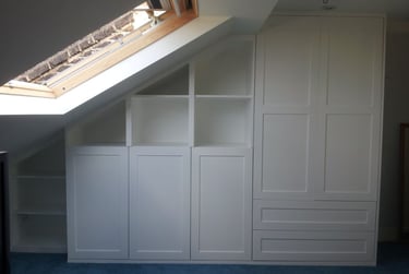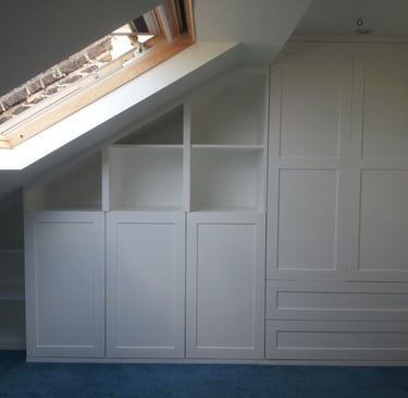 Tailor-made wardrobes, shelving, radiator covers,media units and smart storage that transform unused spaces into practical, beautiful features. Designed to match your home’s style and maximise every inch.